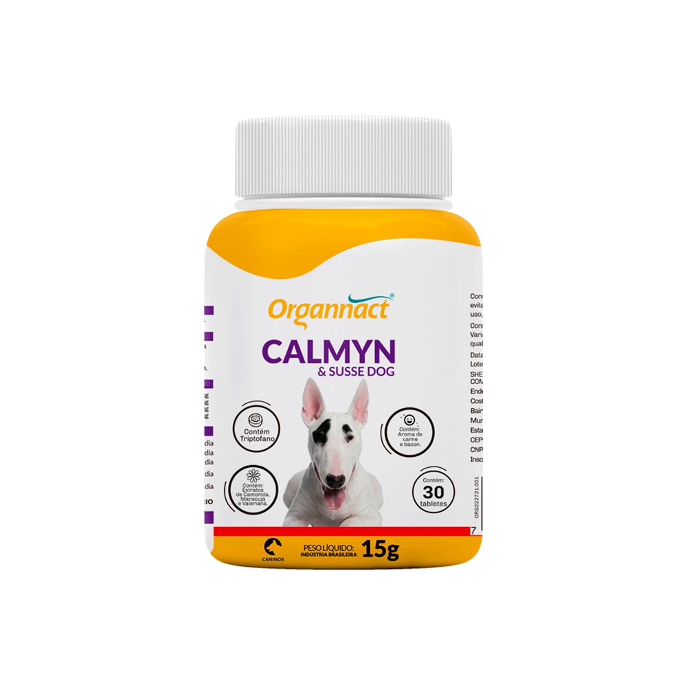 O Suplemento Calmyn & Susse Dog Tabs Organnact é um produto desenvolvido para auxiliar no controle do estresse, ansiedade e hiperatividade em cães de todas as idades.