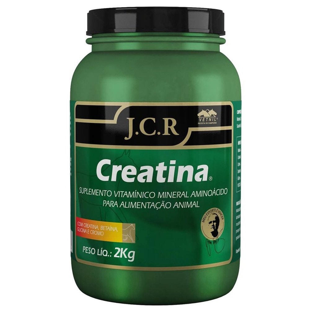 Creatina JCR é um produto formulado especialmente para animais submetidos a esforços físicos intensos, proporcionando expressivo ganho de massa corporal e aumento de performance. O produto contém, além de Creatina e Dextrose, Glicina, Betaína e Cromo (quelatado), componentes que atuam em conjunto no auxílio ao aproveitamento da energia.