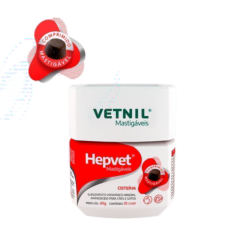 Os componentes presentes no Hepvet® Mastigáveis são fundamentais para o metabolismo de gorduras e proteínas, auxiliando na demanda de nutrientes e componentes específicos que cães e gatos possam ter. Contém nutrientes que agem sinergicamente, favorecendo os processos fisiológicos e a ação da Glutationa. A apresentação em comprimidos mastigáveis auxilia a aceitação pelo animal, tornando sua administração mais um momento de carinho entre o tutor e seu pet.