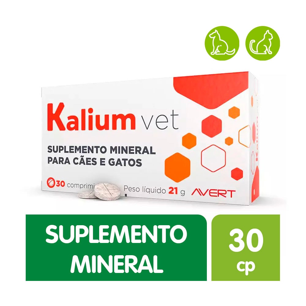 O Suplemento para cães e gatos Kalium Vet Mineral, é ideal para bichinhos de qualquer idade, na reposição de nutrientes. Rico em citrato de potássio coopera para que o animalzinho tenha os minerais e vitaminas necessários para sua vida. O suplemento auxilia para aumentar a solubilidade dos sais formadores de cálculos.