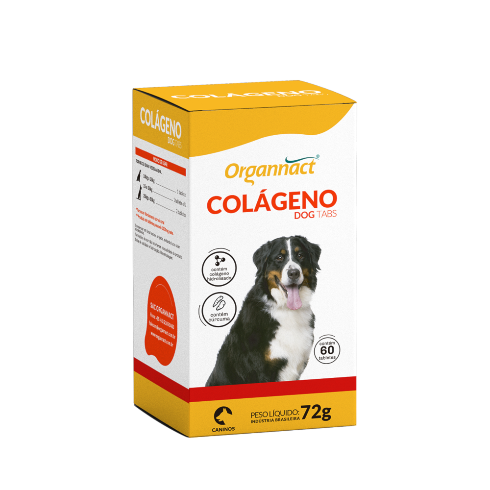 O Organnact Colágeno Dog Tabs 75g é um suplemento aminoácido mineral para cães contendo colágeno hidrolisado e cúrcuma.