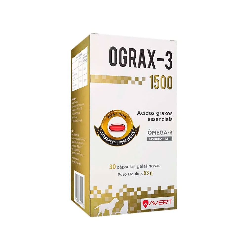 Ograx-3 1500 é um suplemento nutricional composto por ácidos graxos essenciais devirvados principalmente de peixes marinhos. É indicado para cães e gatos que necessitem de um aporte nutricional desses nutrientes.