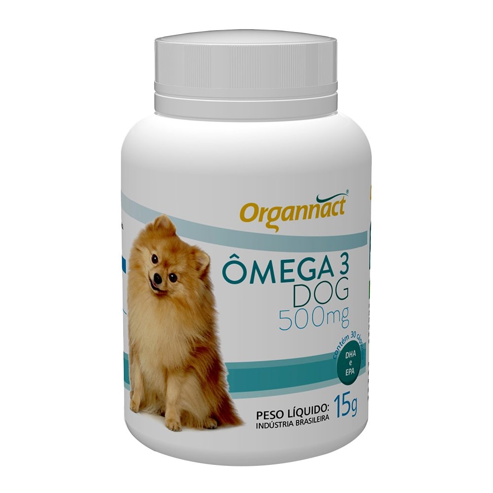 O seu cão também precisa de suplementos alimentares como você. O Omega Dog 500mg Organnact possui ômega 3 extraído do óleo de peixe de águas frias. Ômega 3 é um ácido graxo que não pode ser sintetizado pelo organismo dos cães. Está disponível em cápsulas gelatinosas de 500 mg e 1000 mg com 30 unidades o que facilita a administração pois não possui odor e sabor de peixe.