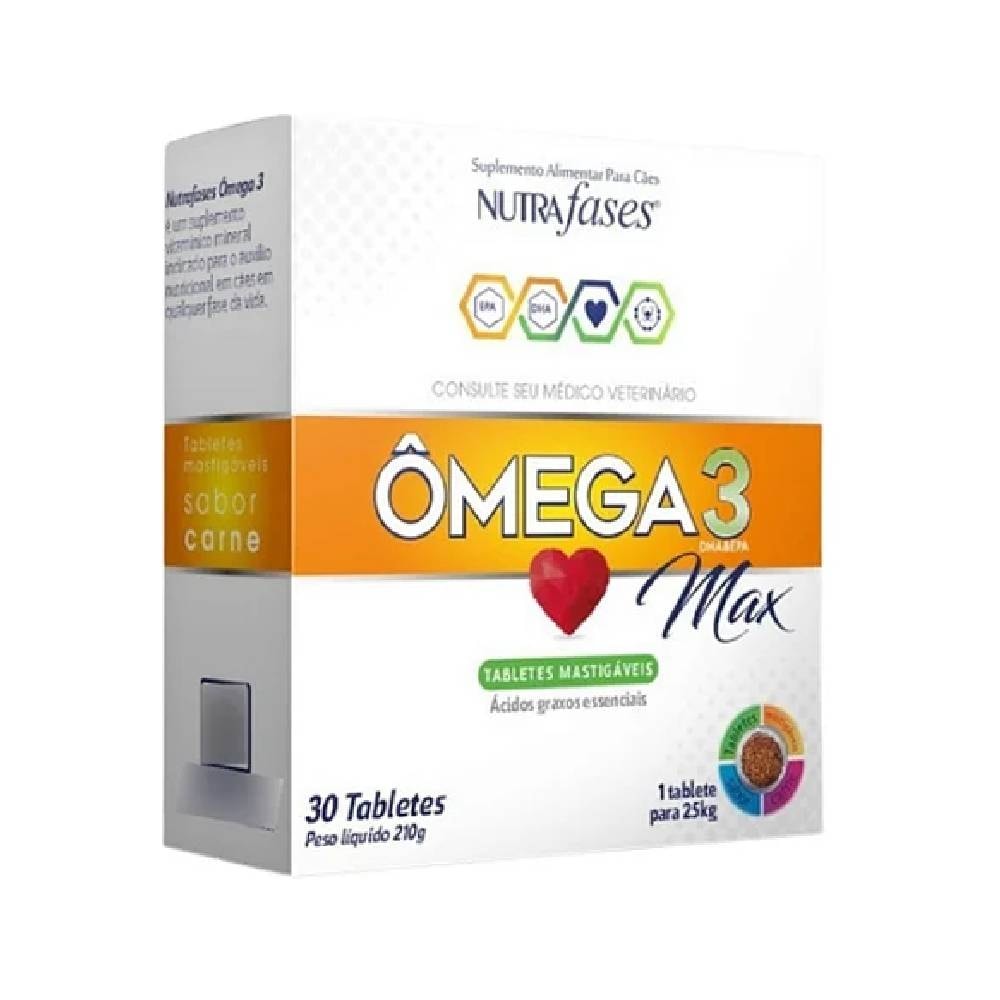 Suplemento Ômega 3 Max NutraFases Vetzam para Cães - 30 Tabletes Mastigáveis Sabor Carne