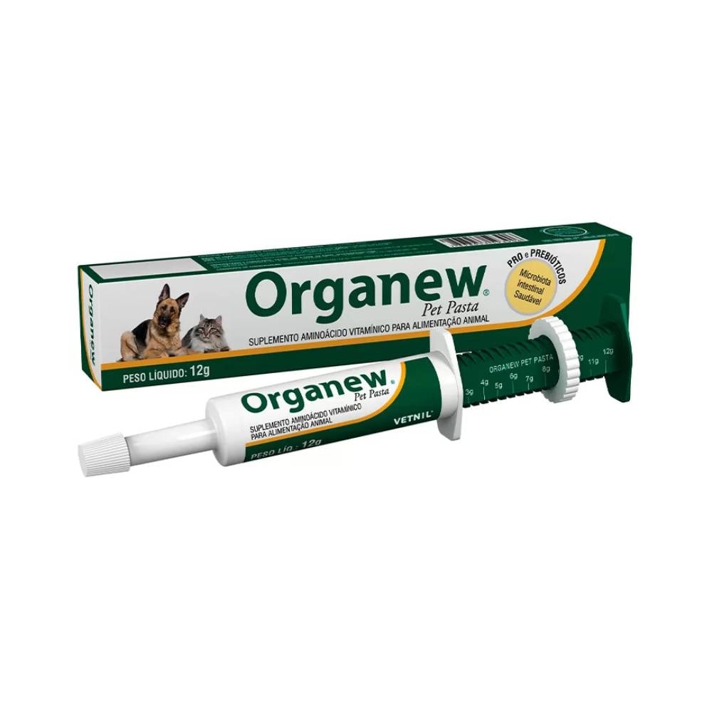 Organew® Pet Pasta é composto por vitaminas, aminoácidos e elementos pró e prébióticos para auxiliar no desenvolvimento e manutenção de uma microbiota intestinal saudável, contribuindo com a melhora da digestibilidade dos nutrientes da dieta e aumento da eficiência alimentar.