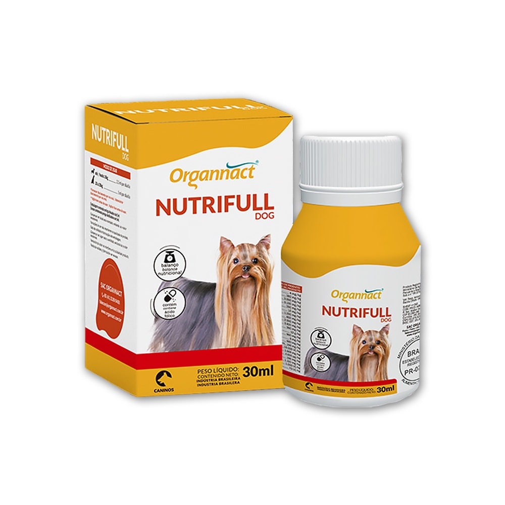 O Organnact Nutrifull Dog é um suplemento alimentar que contém aminoácidos, minerais, vitaminas e maltodextrina, indicado para auxiliar na manutenção da boa qualidade da nutrição oferecida diariamente aos cães.