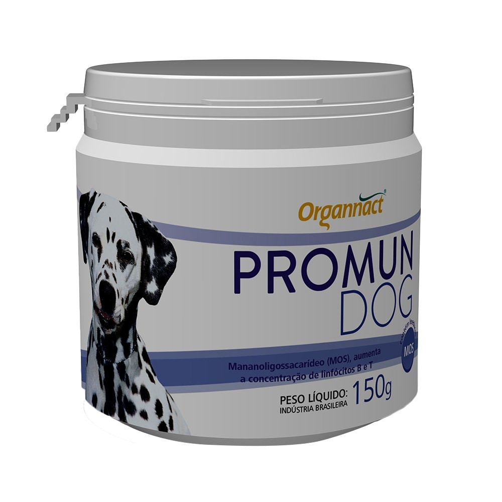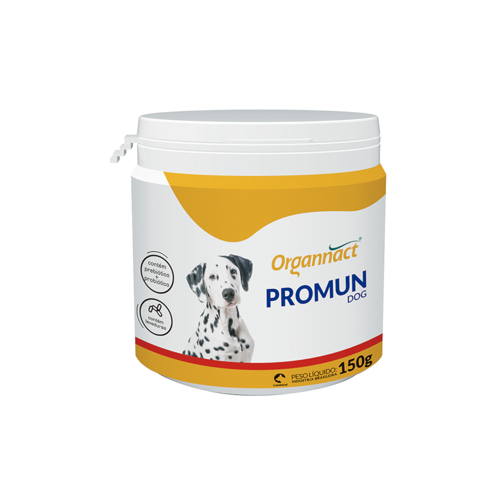 O Organnact Promun Dog 150g é indicado para cães de qualquer idade em qualquer fase da vida, contendo aminoácidos, vitaminas, probiótico e prebiótico.