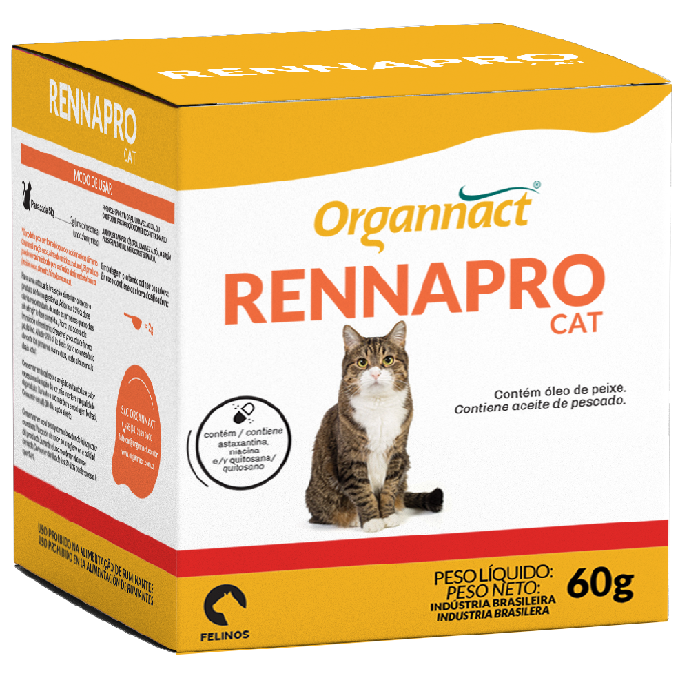Dê ao seu gato o presente da saúde e vitalidade com o Suplemento Rennapro Cat Organnact 60g!