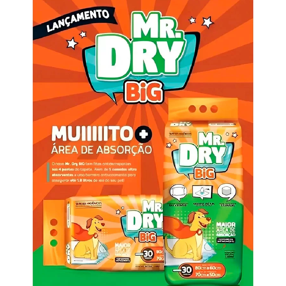 O Tapete Higiênico Mr. Dry Big 30unds 80x60cm - Pestiscão é a escolha perfeita para quem busca praticidade, higiene, conforto, economia e segurança para o seu pet!