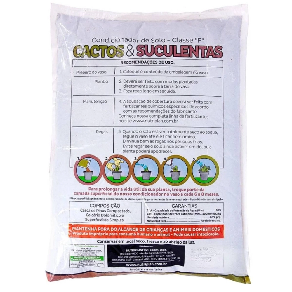 A composição exata da Terra para Cactos e Suculentas 2KG da Nutriplan pode variar, mas geralmente inclui:
