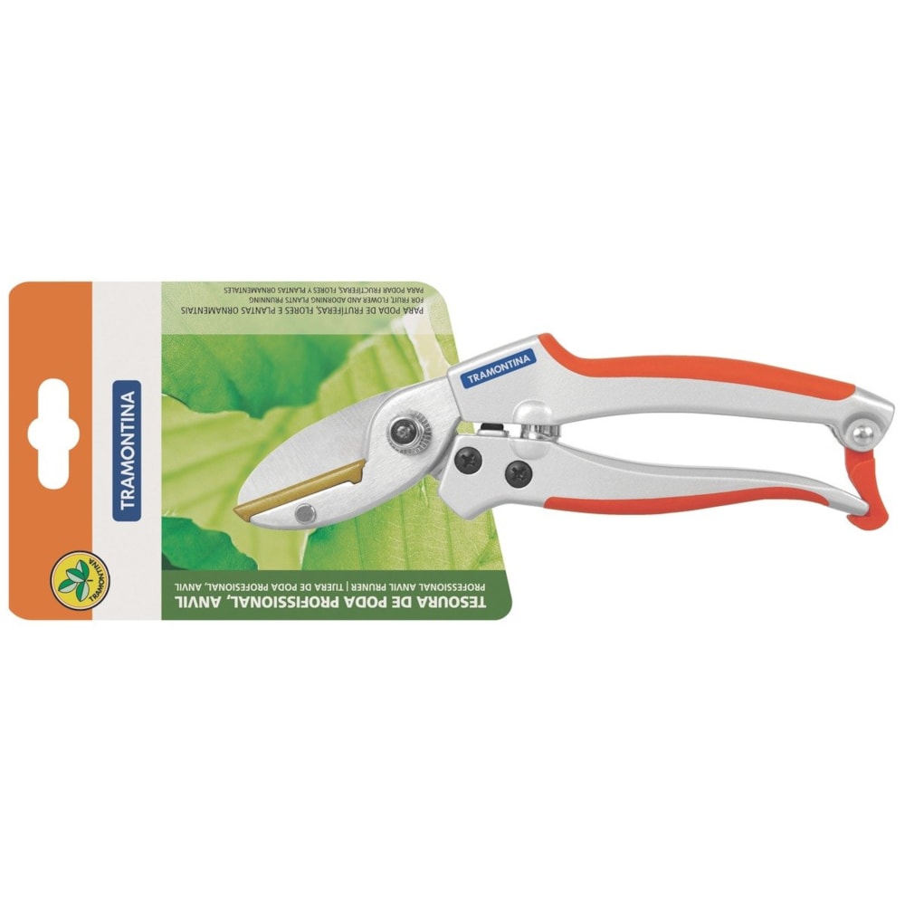 | Recomendações de Uso | A tesoura de poda Professional Tramontina é especialmente desenvolvida para auxiliar na fruticultura, floricultura, silvicultura e paisagismo. Possui cabo ergonômico, trava de segurança e lâminas de aço de alto desempenho. |