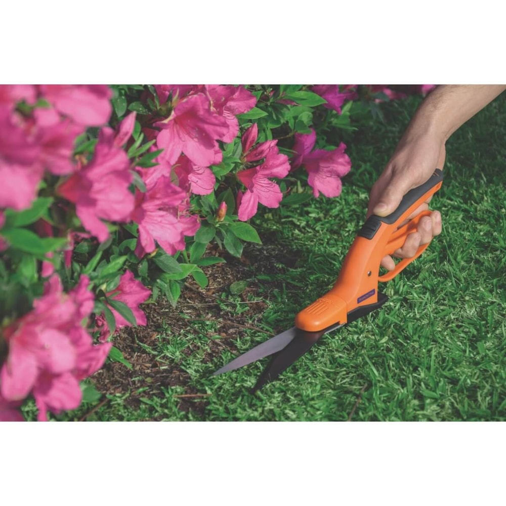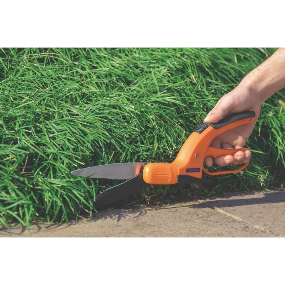 A tesoura é própria para acabamentos de canteiros e para aparar as bordas do gramado.