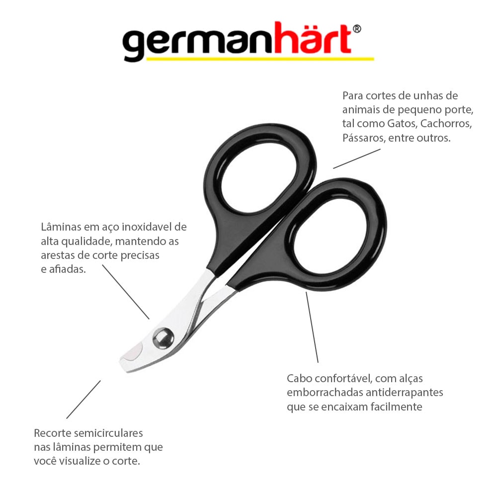Explore o cuidado seguro e eficaz das unhas do seu amado animal de estimação com a Tesoura Germanhart para Gatos, Cães e Pássaros. Esta tesoura é uma escolha versátil, ideal para gatos, cães, pássaros e outros pequenos animais.