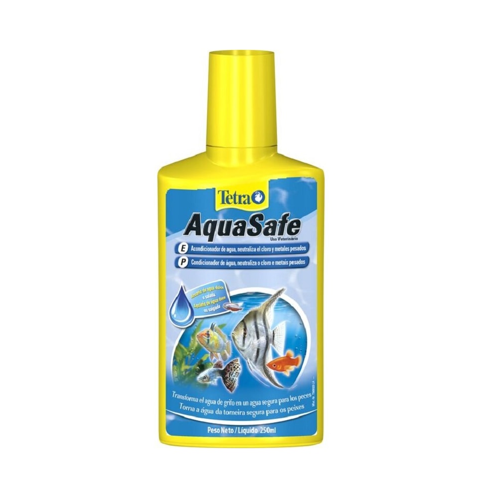 Tetra AquaSafe é um condicionador de água que imediatamente transforma a água da torneira agressiva em água do aquário quase natural propício para o peixe.