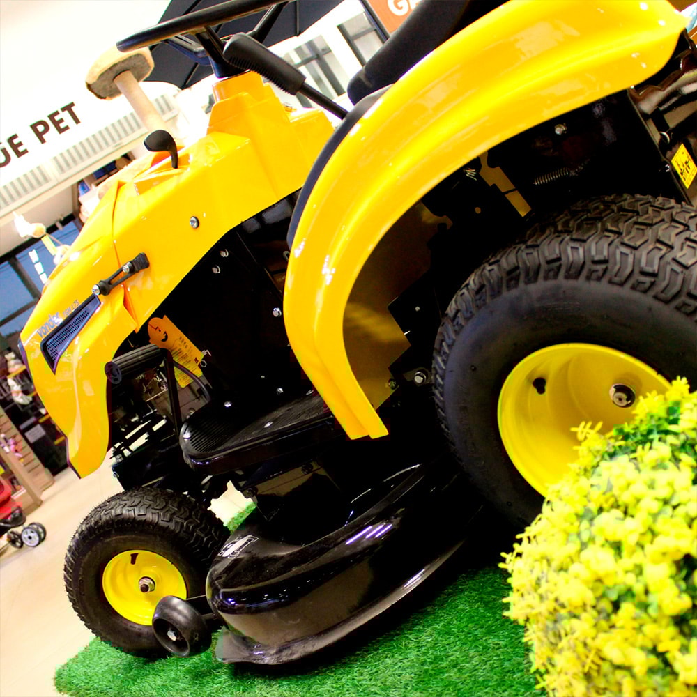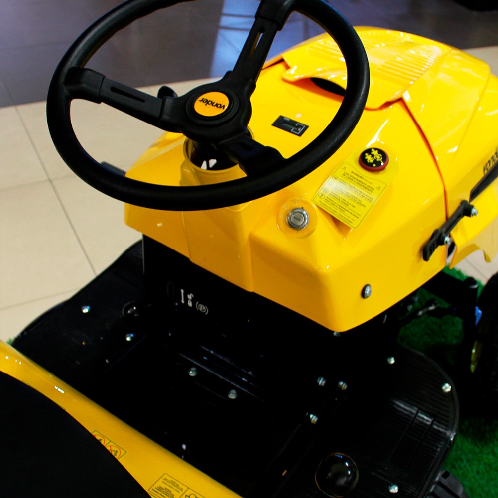 Possui transmissão manual de 7 velocidades, farol com lâmpada incandescente, partida elétrica, 6 ajustes de altura de corte, bomba de óleo e dispositivo de lubrificação interna que permite ao trator trabalhar em terrenos inclinados (até 15° graus para cima e para baixo) sem prejudicar o motor. Dispõe ainda de horímetro, que facilita o controle das manutenções, engate para carreta e dispositivo de segurança no banco que, em caso de queda do operador, desliga o trator automaticamente.