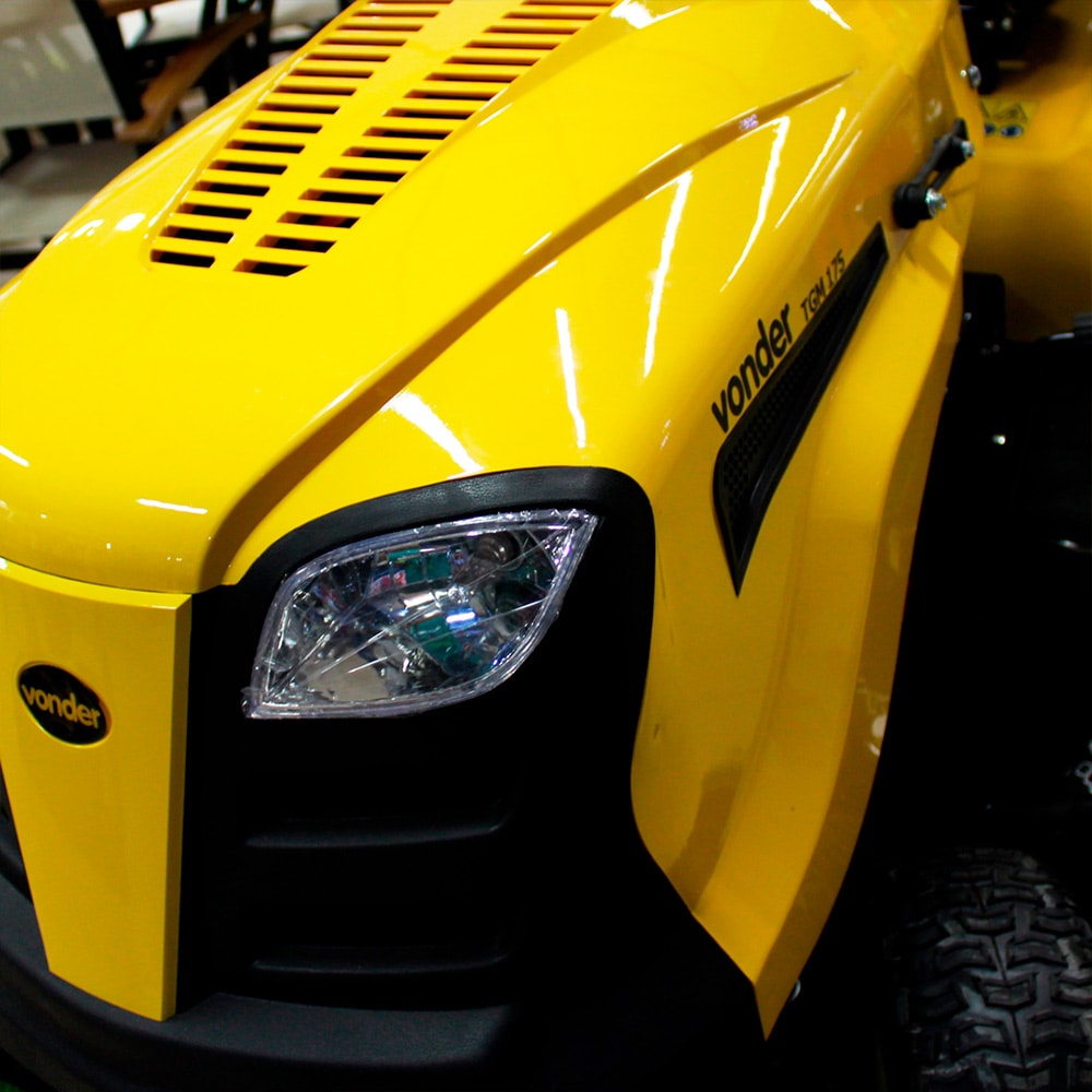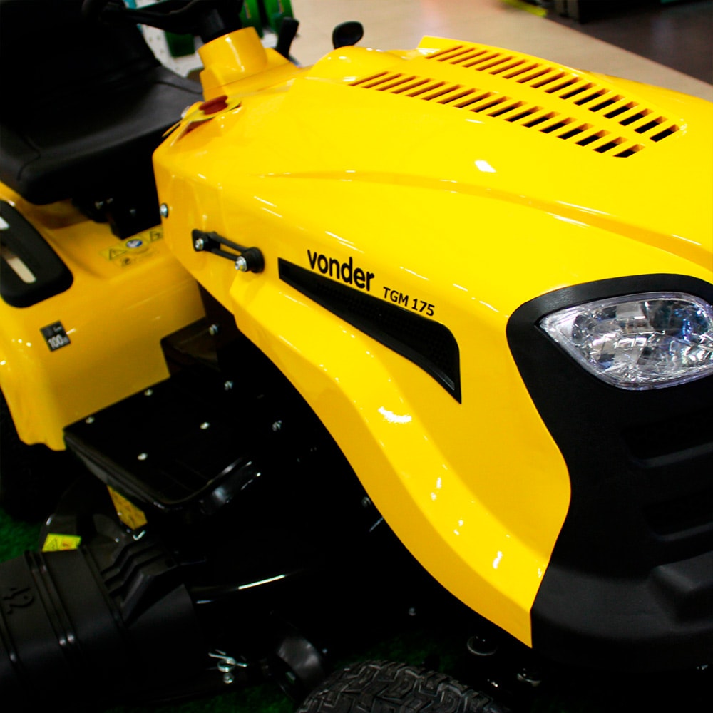 O Trator Cortador de Grama TGM 175 VONDER reúne o melhor da tecnologia e da inovação a favor da produtividade, segurança e ergonomia! É um equipamento que permite a otimização do tempo de trabalho e reduz o esforço do operador, com transmissão manual de 7 velocidades, 6 ajustes de altura de corte, de 25 mm a 80 mm, e motor de 608 cm³ (cc)-17,5 hp.