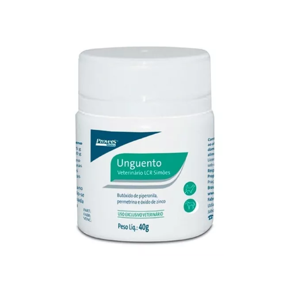 Uso exclusivo externo, em aplicações dermatológicas. Secar o ferimento com um pano limpo ou gaze e aplicar o Unguento Veterinário LCR Simões, utilizando-se uma espátula ou bastão, de modo a cobrir toda a lesão com uma camada uniforme do produto. Repetir a aplicação diariamente até a completa cicatrização do ferimento.