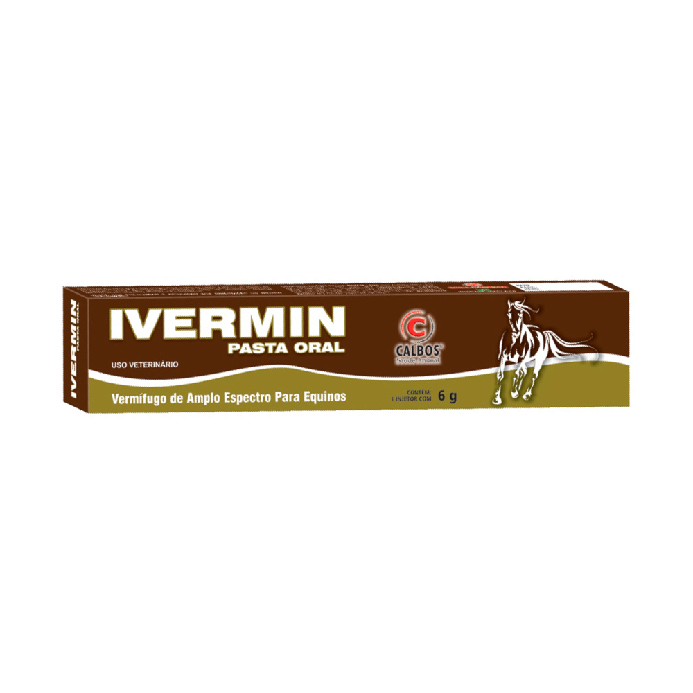 Indicações: Ivermin pasta oral é indicado para o tratamento e controle dos principais parasitas internos dos equinos como: Nematódeos gastrintestinais: Habronema muscae, Trichostrongylus axei e Oxyuris equi. Grandes estrôngilos: Strongylus vulgaris, Strongylus edentatus, Strongylus equinus. Pequenos estrôngilos: Cyathostomum labiatum, Cylicocyclus insigne, Cylicostephanus latinatum, Cyathostomum coranatum, Cyathostomum parteratum, Cylicocyclus radiatus, Cylicocyclus elongatus, Cyathostomum tetracantum, Cyathostomum labratum, Cylicodontophorus bicoronatus, Posteriostomum ratzii e Gyalocephalus capitatus.