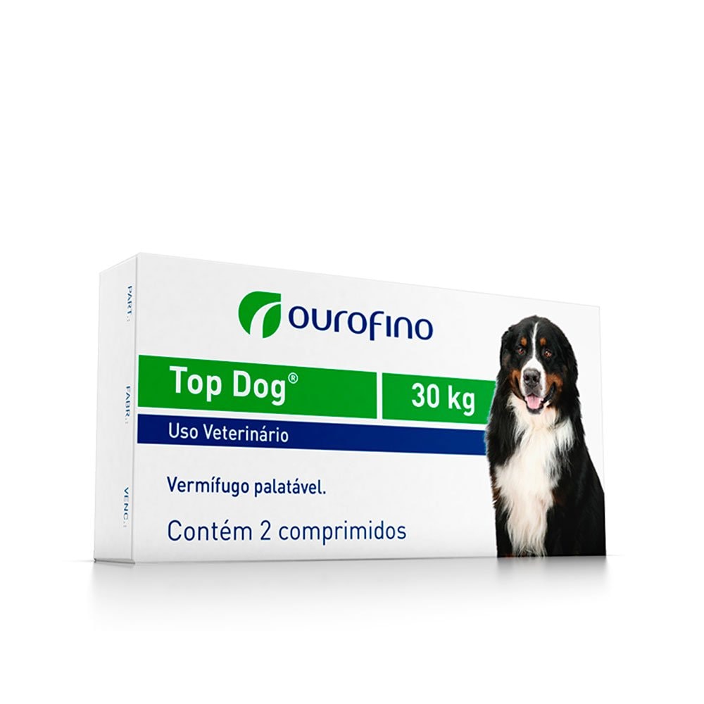 O Vermifugo Ouro Fino Top Dog para Cães de até 30kg é um vermífugo palatável indicado para o combate e controle de parasitas internos (helmintos) de cães com atuação em vermes redondos (nematódeos) e vermes chatos (cestódeos). TOP DOG é também indicado para o tratamento da Giardíase (causada pelo protozoário Giardia sp).