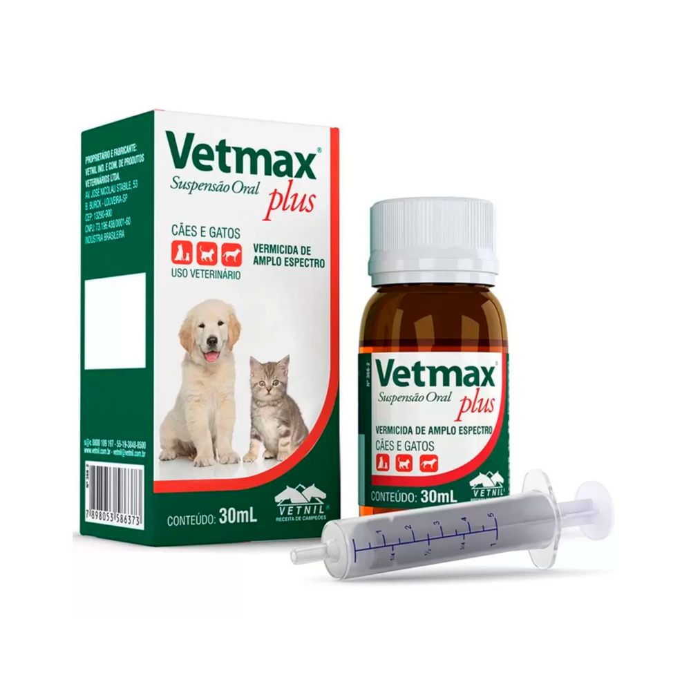 Vetmax Plus Suspensão Oral é um vermífugo de amplo espectro indicado no combate às infestações por nematódeos (vermes redondos) e cestódeos (vermes chatos) gastrintestinais de cães e gatos. Espectro de ação inclui: Ancylostoma caninum, Ancylostoma tubaeforme, Toxocara canis, Toxocara cati, Toxascaris leonina, Uncinaria stenocephala, Trichuris vulpis, Dipylidium caninum, Echinococcus granulosus, Echinococcus multilocularis, Taenia multiceps, Taenia hydatigena, Taenia pisiformis, Taenia ovis, Mesocestoides spp.