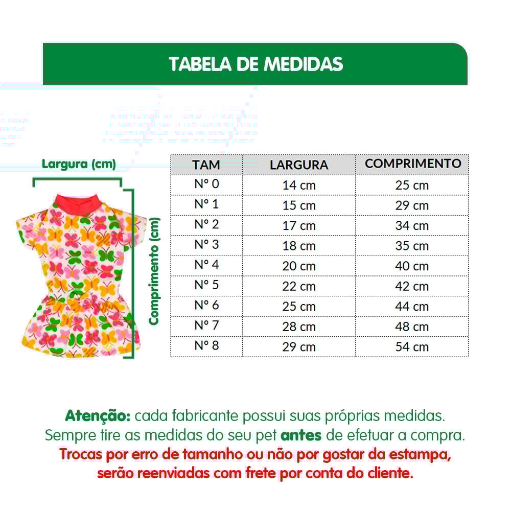 ATENÇÃO: Trocas por erro de tamanho ou por não gostar da estampa, serão reenviadas com frete por conta do cliente.