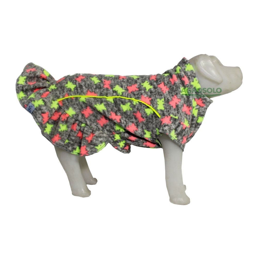 Possui estampa neon estilosa e chamativa feito de malha, pensando sempre no conforto do pet e os babados na saia dão o toque mais fofo do mundo!