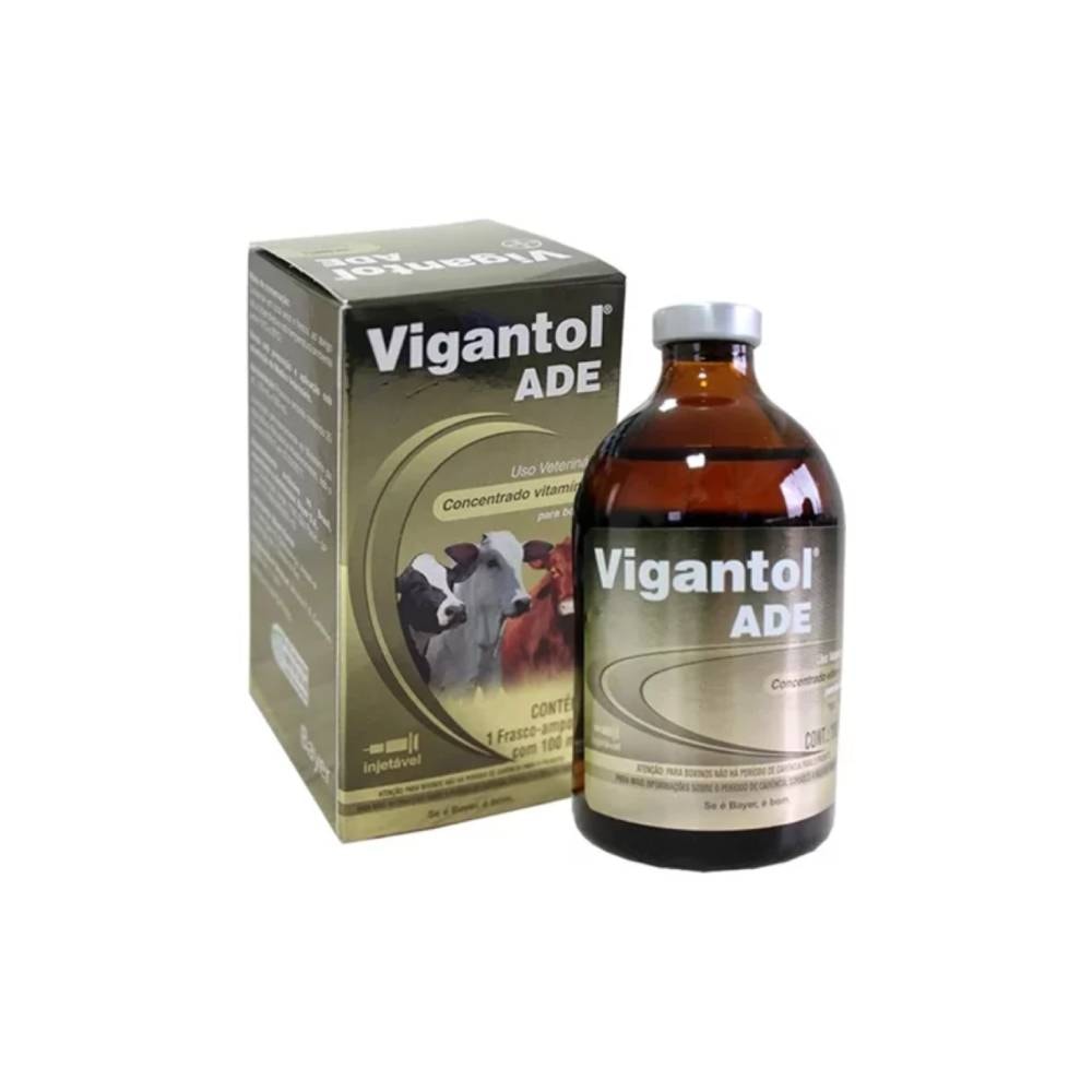Vigantol ADE é um produto indicado exclusivamente para bovinos e constituído pela associação das vitaminas A, D e E, cujos principais benefícios são os seguintes: Auxiliar na prevenção de doenças relacionadas às hipovitaminoses; Auxiliar na complementação vitamínica (A, D e E), nos casos de carências nutricionais em situações como épocas de seca e escassez de alimentos, que requerem aumento das reservas vitamínicas; Em ocasiões onde possa existir uma demanda excessiva, como em situações de estresse, transtornos metabólicos, doenças infecciosas ou parasitárias; Como adjuvante ao tratamento anti-helmíntico, provocando uma recuperação mais rápida e efetiva dos efeitos clínicos da verminose em bovinos. A eficácia deste produto não foi avaliada pelo Ministério da Agricultura, Pecuária e Abastecimento. As indicações deste produto foram baseadas no estudo clínico conduzido pela empresa e por referências de literatura internacionalmente reconhecidas. Composição