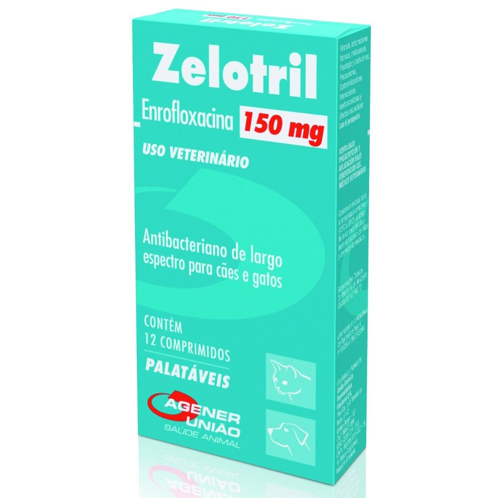 Zelotril 150 mg é indicado para cães e gatos no tratamento de infecções causadas por bactériasn gram-negativas e gram-positivas, além de micoplasmas e espiroquetas sensíveis à enrofloxacina. É especialmente indicado nas: Infecções entéricas (diarréias) causadas por Escherichia coli, Campylobacter spp., Salmonella spp. Infecções dérmicas (piodermites) causadas por Staphylococcus intermedius, Staphylococcus aureus, Staphylococcus epidermidis, Escherichia coli, Pseudomonas spp. e Proteus mirabilis. Otites causadas por Pseudomonas spp., Staphylococcus spp., Streptococcus spp. e Proteus spp.